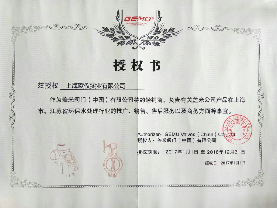 • 德國GEMU蓋米閥門授權(quán)書